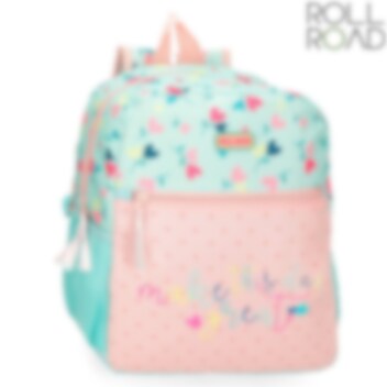 Roll Road Queen Of Hearts – izturīga un stilīga mugursoma bērniem. Tā apvieno praktiskas funkcijas ar pievilcīgu dizainu, padarot to ideāli piemērotu ikdienai, ekskursijām un ceļojumiem. Mugursomā ir ietilpīgs galvenais nodalījums ar rāvējslēdzēju, neliela priekšējā kabata un praktiskas sānu tīkla kabatas dzērieniem un uzkodām. Regulējamās un polsterētās plecu siksnas nodrošina, ka mugursoma stabili un ērti pieguļ bērna mugurai, ļaujot bērnam pilnībā brīvi kustēties visas dienas garumā. Mugursomai ir arī praktiska roktura cilpa gan nēsāšanai, gan pakarināšanai.