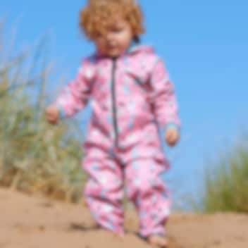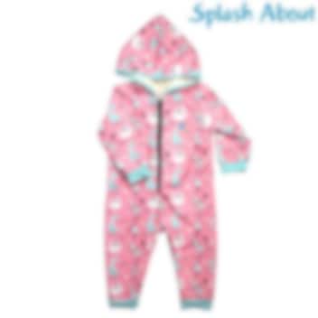 SplashAbout Waterproof Onesie Nina's Ark ir silts un ērts viengabala kombinezons mazuļiem un maziem bērniem ar patīkamu flīsa oderi. Šis mīkstais SplashAbout onesijs ir gan ūdensnecaurlaidīgs, gan vējaizturīgs, ar rievotiem aproču galiem un īpaši lielu kapuci. Tas lieliski sasilda pēc peldes vai aukstā laikā ārā.