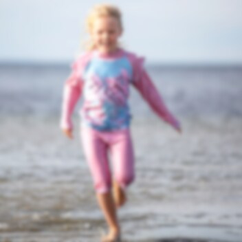 Swimpy Flamingo ir stilīgs un funkcionāls UV aizsargapģērba komplekts bērniem, kas sastāv no krekla ar īsām piedurknēm un ērtām peldbiksēm. Komplektam ir sertificēta UPF 50+ aizsardzība, kas droši pasargā no saules kaitīgajiem stariem gan pludmalē, gan peldoties baseinā. Apģērbs ir izgatavots no mīksta un elastīga materiāla (82% poliamīds, 18% elastāns), kas ir patīkams ādai, viegls pat mitrā stāvoklī un ātri izžūst pēc lietošanas. Pateicoties kvalitatīvajam audumam un Oeko-Tex apstiprinājumam, tas nodrošina drošību un komfortu bērniem aktīvās dienās saulē.