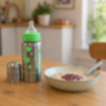 Izturīga, praktiska un stilīga bērnu pudelīte ar termo funkciju no nerūsējošā tērauda, kas uztur dzērienu karstu vai aukstu līdz pat 6 stundām. OrganicKidz Thermal Baby Bottle Green Dots ir ideāla izvēle vecākiem, kas meklē drošu, funkcionālu un videi draudzīgu alternatīvu plastmasas un alumīnija pudelēm. Pudelīte nesatur PVC, bisfenolu A (BPA) un ftalātus, nodrošinot pilnīgu drošību jūsu mazulim. Šī termo bērnu pudelīte ir ne tikai praktiska, bet arī viegli lietojama ikdienā – gan mājās, gan ceļojumos vai dabā. Tā apvieno modernu dizainu ar augstu funkcionalitāti: vāciņa veidots mērtrauks ļauj precīzi dozēt dzērienu, bet standarta izmēra mīkstais silikona uzgalis padara dzeršanu ērtu un drošu. Nerūsējošais tērauds neietekmē dzēriena garšu, un pudele ir apstiprināta lietošanai pārtikā.