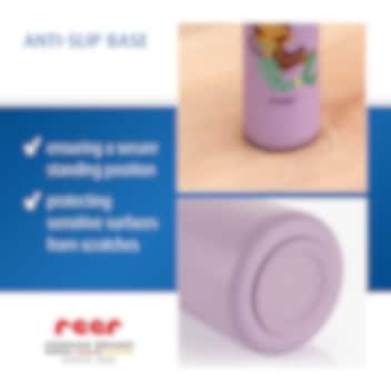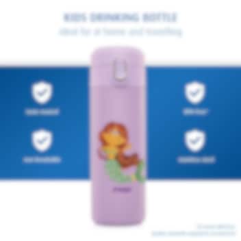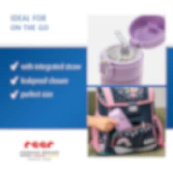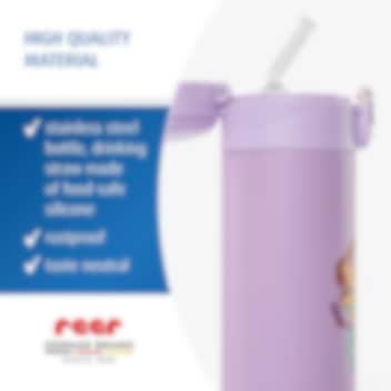 Šī praktiskā un izturīgā dzeramā pudele ir ideāli piemērota aktīviem bērniem bērnudārzā, skolā vai ekskursijās. Pudele ir 350 ml ietilpīga un izgatavota no nerūsējošā tērauda, PP un silikona – pilnībā bez BPA un pārbaudīta saskaņā ar EN 14350, nodrošinot augstāko drošības līmeni. Ar viedo “one-click” atvēršanu Reer Mermaid pudele viegli tiek atvērta ar vienu roku, padarot to ērtu pat mazākiem bērniem. Slēptais salmiņš pasargāts no netīrumiem, saglabājot pudeli higiēnisku arī kustībā.