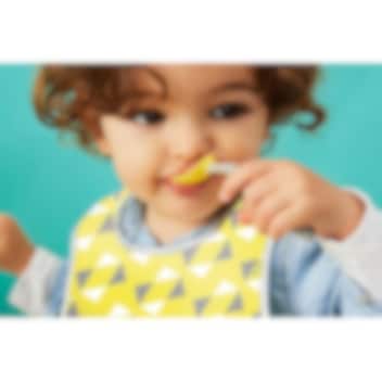 Produkts: Lacīte bērniem ar kabatu un silikona karoti