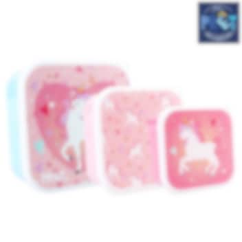 Prêt Unicorn Fresh Bites ir praktisks pusdienu kastīšu komplekts ar vākiem bērniem, kas piemērots ēdienam, augļiem un uzkodām. Komplektā ietilpst trīs dažādi izmēri, kurus nelietojot var ievietot vienu otrā, tādējādi ietaupot vietu. Uzkodu kastītes ir izgatavotas no netoksiska, pārtikas produktiem apstiprināta un izturīga materiāla, nodrošinot drošu un ērtu pārtikas uzglabāšanu. Paņemiet Prêt uzkodu kastīšu komplektu līdzi ceļojumā, uz skolu vai prom no mājām un piepildiet tās ar ēdienu, augļu gabaliņiem, rozīnēm vai cepumiem.