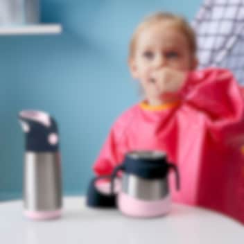 B.box Insulated Food Jar Indigo Rose ir praktisks dubultsienu pārtikas termoss, kas izgatavots no pārtikas kvalitātes nerūsējošā tērauda, kas uztur ēdienu karstu 5 stundas vai aukstu līdz 7 stundām. Piepildiet pārtikas termosu ar karstu ēdienu, piemēram, makaronu un zupu, vai ar aukstu pārtiku, piemēram, augļiem un jogurtu, un pabarojiet savu bērnu, kad viņš kļūst izsalcis, piemēram, lidostās, autobusos, restorānā vai kopā ar ģimeni un draugi. Lai uzsildītu bērna ēdienu, nav jāmeklē katli, mikroviļņu krāsnis un plītis.