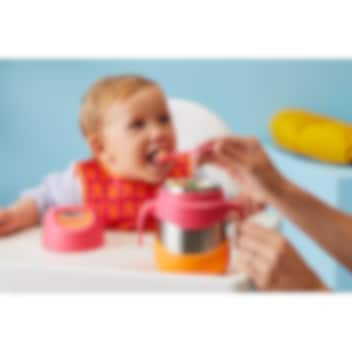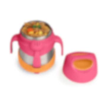 B.box Insulated Food Jar Strawberry Shake ir praktisks dubultsienu pārtikas termoss, kas izgatavots no pārtikas kvalitātes nerūsējošā tērauda, kas uztur ēdienu karstu 5 stundas vai aukstu līdz 7 stundām. Piepildiet pārtikas termosu ar karstu ēdienu, piemēram, makaronu un zupu, vai ar aukstu pārtiku, piemēram, augļiem un jogurtu, un pabarojiet savu bērnu, kad viņš kļūst izsalcis, piemēram, lidostās, autobusos, restorānā vai kopā ar ģimeni un draugi. Lai uzsildītu bērna ēdienu, nav jāmeklē katli, mikroviļņu krāsnis un plītis.