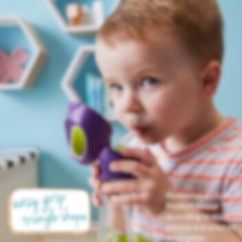 B.box Tritan Water Bottle Lilac Pop ir ērta, droša un izturīga dzeramā pudele bērniem. Izgatavota no netoksiska Tritan materiāla, tā neizdala smaku vai garšu un pilnībā nesatur BPA, padarot to par ideālu ikdienas lietošanai. Pudelei ir unikāla trīsstūrveida ergonomiska forma, kas nodrošina drošu un ērtu satvērienu bērna rokās. Noņemams silikona salmiņš ļauj bērnam dzert bez noplūdēm un izšļakstīšanās, bet vāciņš pasargā salmiņu no netīrumiem un šķidruma noplūdes. Praktiskais pārnēsāšanas rokturis un apakšējā trieciena aizsardzība padara pudeli drošu un ērtu lietošanai skolā, izbraucienos vai sporta aktivitātēs.