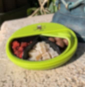 Carl Oscar SnackDISC Lime Monkey ir inovatīva uzkodu kastīte bērniem ar karuseli, kurā ir viens lielāks un četri mazāki nodalījumi. Tos var piepildīt ar dažādām uzkodām pirms ceļojuma, ekskursijas vai ikdienas aktivitātēm. Karuseli var izņemt un izmantot atsevišķi, kas padara uzkodu pasniegšanu vēl ērtāku. Uzkodu kastīte ir izgatavota no BPA nesaturošas un izturīgas cietas plastmasas, un tās dizains ir gan praktisks, gan pievilcīgs bērniem. Vāks tiek pagriezts, lai droši aizvērtu uzkodas, novēršot to izkrišanu un saglabājot tīrību. Carl Oscar SnackDISC ir lieliski piemērots gan lidmašīnā, autobusā, vilcienā vai automašīnā, gan arī skolas un bērnudārza ekskursijās. Piepildiet uzkodu kastīti ar ogām, riekstiem, augļu vai dārzeņu gabaliņiem, lai bērni varētu baudīt veselīgas un garšīgas uzkodas jebkurā vietā.