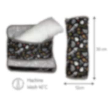 Ja brauciens ar automašīnu ir garš, bērnam būs patīkami, ja viņam ir mīksts drošības jostas spilvens, pret kuru var atspiest galvu. Heckbo Dino Skeletons ir izgatavots no mīksta plīša un nodrošina ērtu atbalstu gan galvai, gan kaklam. Spilvens, kura izmēri ir 30 x 12 x 6 cm, viegli piestiprinās pie automašīnas drošības jostas ar Velcro stiprinājumu aizmugurē. Gan drošības jostas spilvens, gan noņemamais pārvalks ir mazgājami veļas mašīnā līdz 40 grādiem, padarot to praktisku ikdienas lietošanai. Spilvens ir ideāli piemērots arī snaudienam, nodrošinot bērna komfortu un drošību garos braucienos.