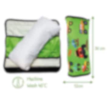 Ja brauciens ar automašīnu ir garš, bērnam būs patīkami, ja viņam ir mīksts drošības jostas spilvens, pret kuru var atspiest galvu. Heckbo Monster Trucks ir izgatavots no mīksta plīša un nodrošina ērtu atbalstu gan galvai, gan kaklam. Spilvens, kura izmēri ir 30 x 12 x 6 cm, viegli piestiprinās pie automašīnas drošības jostas ar Velcro stiprinājumu aizmugurē. Gan drošības jostas spilvens, gan noņemamais pārvalks ir mazgājami veļas mašīnā līdz 40 grādiem, padarot to praktisku ikdienas lietošanai. Spilvens ir ideāli piemērots arī snaudienam, nodrošinot bērna komfortu un drošību garos braucienos.