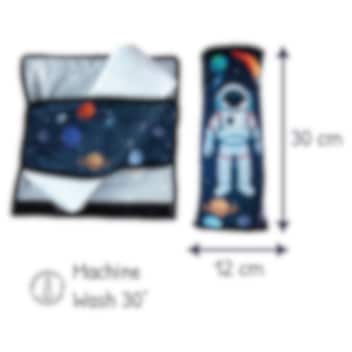 Ja brauciens ar automašīnu ir garš, bērnam būs patīkami, ja viņam ir mīksts drošības jostas spilvens, pret kuru var atspiest galvu. Heckbo Space ir izgatavots no mīksta plīša un nodrošina ērtu atbalstu gan galvai, gan kaklam. Spilvens, kura izmēri ir 30 x 12 x 6 cm, viegli piestiprinās pie automašīnas drošības jostas ar Velcro stiprinājumu aizmugurē. Gan drošības jostas spilvens, gan noņemamais pārvalks ir mazgājami veļas mašīnā līdz 40 grādiem, padarot to praktisku ikdienas lietošanai. Spilvens ir ideāli piemērots arī snaudienam, nodrošinot bērna komfortu un drošību garos braucienos.