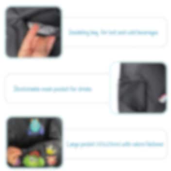 • Automašīnas sēdekļa aizsargs ar kabatām un iPad/plansetdatora turētāju