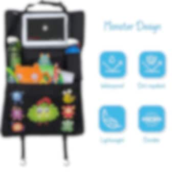 Heckbo Tablet Holder Monster ir funkcionāls un gudrs automobiļa sēdekļa pārvalks ar kabatām, pudeles turētāju un planšetdatora kabatu. To viegli uzstādīt uz priekšējā sēdekļa atzveltnes. Pārvalkam ir ietilpīga kabata sīkrīkiem un uzkodām, tīkla kabata un auksti izolēta kabata dzērienu pudelēm. Tam ir arī viedais turētājs planšetdatoram līdz 12 collām (30,5 cm), ar regulējamu leņķi, izgatavots no skārienplēves, lai ērti piekļūtu vadības ierīcēm, neizņemot planšetdatoru no kabatas. Sēdekļa pārvalks aizsargā priekšējā sēdekļa atzveltni no netīrumiem, skrāpējumiem un nodiluma, un to var viegli uzstādīt lielākajā daļā automašīnu modeļu, padarot braucienus ērtākus un kārtīgākus.
