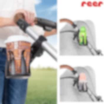 Reer Clipp&Go Cup Holder ir gudrs un praktisks tasīšu un pudeļu turētājs ratiņiem. Pateicoties viedajam stiprinājumam, turētāju var izmantot uz visiem parastajiem ratiņiem, un tas lieliski der arī piestiprināšanai uz velosipēda (var piestiprināt pie caurules ar diametru līdz 50 mm). Kronšteinu var noregulēt 180 grādu leņķī, lai tas atbilstu jūsu ratiņiem vai velosipēdam. Pats turētājs ir piemērots lielākajai daļai pudeļu, krūzīšu un kafijas tasīšu ar dibena diametru 5–7 cm (parastais standarts).
