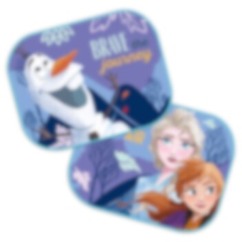 Saulessargi automašīnai: Skaistie saulessargi (2 gab.) stilīgā Frozen dizainā ir izgatavoti ar pop-up tehnoloģiju (paši atveras) un stiprinās ar piesūcekņiem. Kad saulessargi netiek izmantoti, tos viegli var salocīt un uzglabāt, piemēram, sēdekļa kabatā.