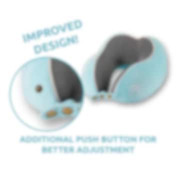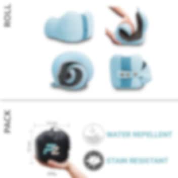 Novatoriskais un ērtais Comfy Kids Blue Medium kakla spilvens no Flowzoom ir ideāls ceļabiedrs jūsu bērnam lidmašīnā, vilcienā, autobusā vai automašīnā. Spilvens ir ergonomiski izstrādāts tā, lai perfekti atbilstu bērna galvai un kaklam, nodrošinot maksimālu komfortu garos ceļojumos. Comfy Kids ir izgatavots no ērtā “Breath-Easy” materiāla, kas samazina pārkaršanas risku, un tā atmiņas putu pildījums no antibakteriālas viskozes pielāgojas bērna galvas formai, novēršot galvas noliekšanos uz priekšu, kad bērns noliecas atpakaļ. Priekšpusē esošā spiedpoga ļauj regulēt spilvenu trīs dažādos izmēros, savukārt pēc lietošanas to var ērti sarullēt un ievietot komplektā iekļautajā somā. Iesaiņotā spilvena izmēri ir tikai 15 x 14 cm, padarot to viegli pārnēsājamu, piemēram, rokas bagāžā.