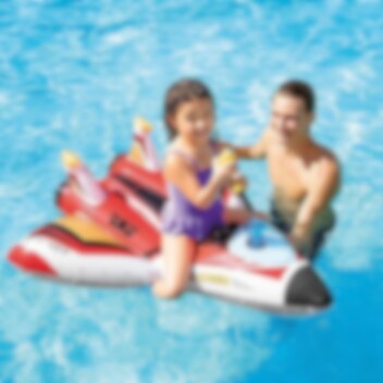 Intex Water Gun Plane Ride On Red ir piepūšama baseina rotaļlieta lidmašīnas formā. The pooltoy ir izgatavots ar izturīgu un stabilu dizainu. Lidmašīna ir 117 x 117 cm izmērā un aprīkota ar ūdens pistoli. Blakus ūdens pistoles turētājam ir rokturis, pie kura turēties. Intex Water Gun Plane Ride On ir izgatavots no stipra vinila, kas ir izturīgs gan pret sauli, gan sālsūdeni. Paredzēts bērniem no apmēram 3 gadiem.