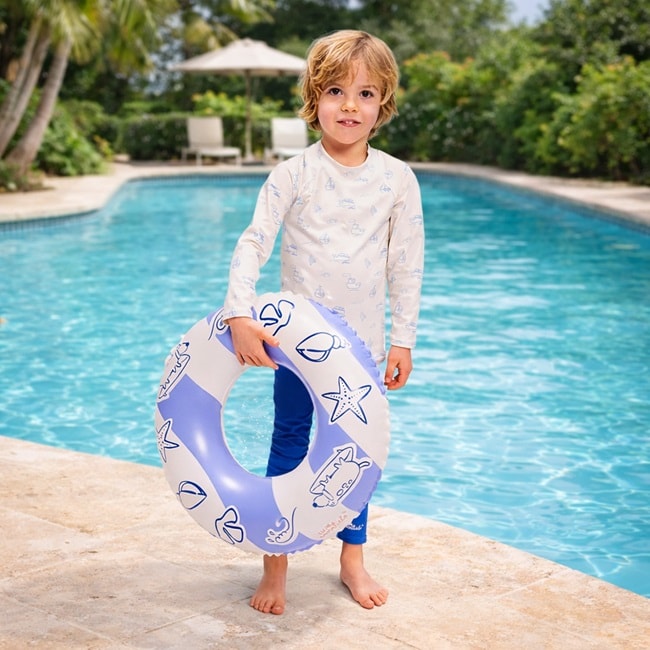 Swim Essentials Blue Surfer piepūšamais peldriņķis ir labs izvēle drošām un jautrām peldēm bērniem. Ar 55 cm diametru un maksimālo ietilpību līdz 50 kg tas ir piemērots bērniem no 3 gadu vecuma. Izgatavots no netoksiska, izturīga PVC materiāla, aprīkots ar drošības vārstu un pārbaudīts saskaņā ar stingriem ES standartiem. Peldriņķa skaistais dizains piešķir peldēšanai prieku un vasarīgu noskaņu – lieliski piemērots gan baseinam, gan jūrai.