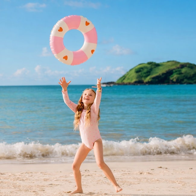 Swim Essentials Cozy Hearts piepūšamais peldriņķis ir labs izvēle drošām un jautrām peldēm bērniem. Ar 55 cm diametru un maksimālo ietilpību līdz 50 kg tas ir piemērots bērniem no 3 gadu vecuma. Izgatavots no netoksiska, izturīga PVC materiāla, aprīkots ar drošības vārstu un pārbaudīts saskaņā ar stingriem ES standartiem. Peldriņķa skaistais dizains piešķir peldēšanai prieku un vasarīgu noskaņu – lieliski piemērots gan baseinam, gan jūrai.