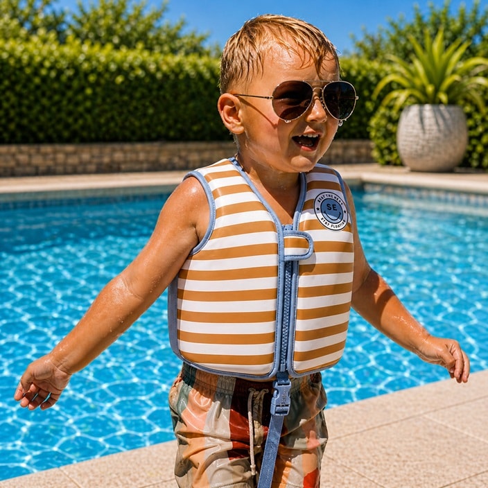 Swim Essentials Brown Striped peldveste bērniem ir ideāls peldēšanas palīglīdzeklis rotaļām un peldēšanas apmācībām bērniem vecumā no 3 līdz 6 gadiem (18–30 kg). Peldveste ir izgatavota no mīksta un elastīga neoprēna, kas nodrošina bērnam brīvas un dabiskas kustības ūdenī. Krūškurvja paneļu iekšpusē esošās putas palīdz peldvestei uzturēt stabilu stāvokli ūdenī, nodrošinot bērnam drošu un ērtu peldēšanu. Peldveste aizveras ar rāvējslēdzēju un Velcro aizdari, padarot to viegli uzvelkamu un novilcamu. Ar stilīgo Lilac Leopard dizainu jūsu bērns būs redzams un drošībā ūdens priekos.