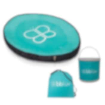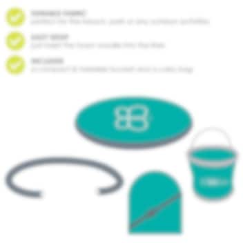 Iekļauts: Bērnu baseins, putu gumijas mala, spainis un transportēšanas soma