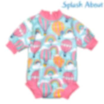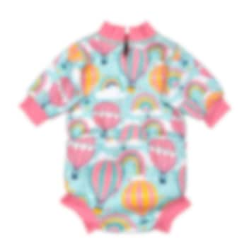 SplashAbout Happy Nappy Baby Wetsuit Up & Away ir sildošs un ērts hidrotērps zīdaiņiem un maziem bērniem, kas nodrošina gan komfortu, gan drošību peldēšanās laikā. Hidrotērps ir izgatavots no 1 mm bieza, mīksta neoprēna, kas palīdz uzturēt mazuli siltu ūdenī un ātri izžūst pēc lietošanas. Apakšējā daļā iestrādāts Happy Nappy peldēšanas autiņš ar ciešu gumiju ap kājām, lai izvairītos no nehigiēniskiem negadījumiem baseinā. Turklāt hidrotērpam ir UPF 50+ saules aizsardzība, kas pasargā bērna ādu no kaitīgajiem stariem. Praktiskais rāvējslēdzējs aizmugurē padara hidrotērpa uzvilkšanu un novilkšanu īpaši vienkāršu, bet elastīgais un ērtas piegriezuma materiāls nodrošina pilnīgu kustību brīvību ūdenī.