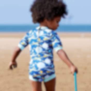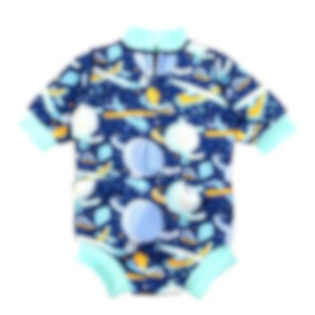 SplashAbout Happy Nappy Baby Wetsuit Up In The Air ir sildošs un ērts hidrotērps zīdaiņiem un maziem bērniem, kas nodrošina gan komfortu, gan drošību peldēšanās laikā. Hidrotērps ir izgatavots no 1 mm bieza, mīksta neoprēna, kas palīdz uzturēt mazuli siltu ūdenī un ātri izžūst pēc lietošanas. Apakšējā daļā iestrādāts Happy Nappy peldēšanas autiņš ar ciešu gumiju ap kājām, lai izvairītos no nehigiēniskiem negadījumiem baseinā. Turklāt hidrotērpam ir UPF 50+ saules aizsardzība, kas pasargā bērna ādu no kaitīgajiem stariem. Praktiskais rāvējslēdzējs aizmugurē padara hidrotērpa uzvilkšanu un novilkšanu īpaši vienkāršu, bet elastīgais un ērtas piegriezuma materiāls nodrošina pilnīgu kustību brīvību ūdenī.