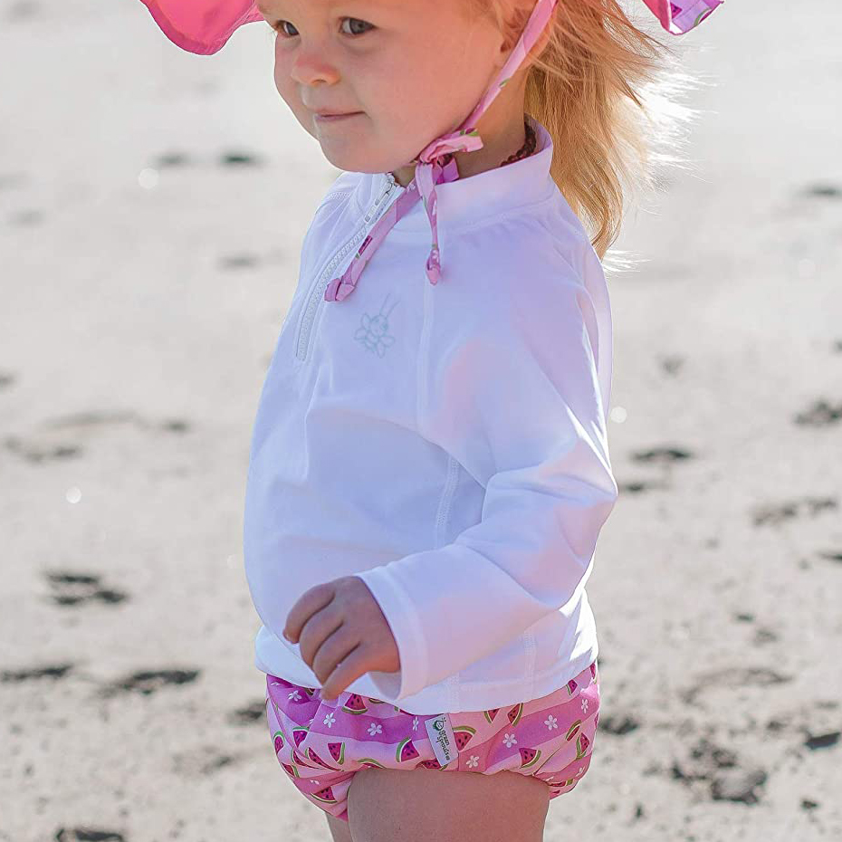 Green Sprouts Eco Pull-Up Watermelon peldēšanas autiņbiksītes ir ērtas, jaukas un funkcionālas bērnu peldēšanas autiņbiksītes, kas droši novērš neērtas un nehigiēniskas noplūdes baseinā. Šīm peldēšanas autiņbiksītēm ir trīsslāņu konstrukcija: mitrumu uzsūcošs slānis, kas pasargā no autiņbiksīšu izsitumiem, absorbējošs iekšējais slānis un ūdensnecaurlaidīgs ārējais slānis, kas efektīvi novērš noplūdes. Elastīgās joslas ap vidukli un augšstilbiem nodrošina ciešu, bet ērtu piegulšanu. Materiāls ir mīksts, elastīgs, Oeko-Tex Standard 100 sertificēts un aprīkots ar SPF 50+ aizsardzību pret sauli, kas padara šīs peldēšanas autiņbiksītes ideāli piemērotas gan baseinam, gan pludmalei. Green Sprouts Eco Pull-Up peldēšanas autiņbiksītes ir viegli uzvilkt un novilkt, tās var mazgāt veļas mašīnā un izmantot atkārtoti – droša, higiēniska un videi draudzīga izvēle jūsu mazulim.