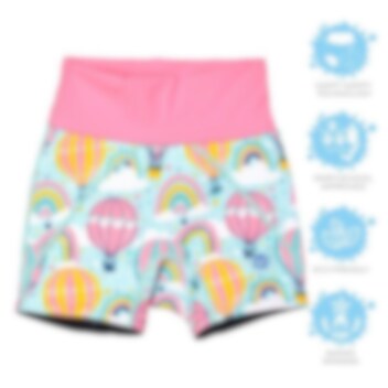 SplashAbout Splash Jammers Up & Away peldbikses ar autiņbiksīšu funkciju ir praktisks un drošs risinājums nedaudz vecākiem bērniem peldēšanas laikā. Šīs peldbikses ir izgatavotas no blīva un elastīga neoprēna, kas nodrošina komfortu un drošu piegulšanu gan baseinā, gan atpūšoties pie jūras. Peldbiksēm ir stingra jostasvieta un cieši pieguļošas malas ap augšstilbiem, kas efektīvi novērš neērtas un nehigiēniskas noplūdes. Tādēļ Splash Jammers peldbikses ir lieliski piemērotas peldēšanas nodarbībām, ūdens spēlēm vai brīvdienu ceļojumiem. Mīkstais un elastīgais materiāls nodrošina, ka peldbikses ir ērti valkājamas pat tad, ja tās ir slapjas. Peldbikses ātri izžūst un sniedz saules aizsardzību UPF 50+, kas padara tās par drošu izvēli arī ārā pavadītām dienām.
