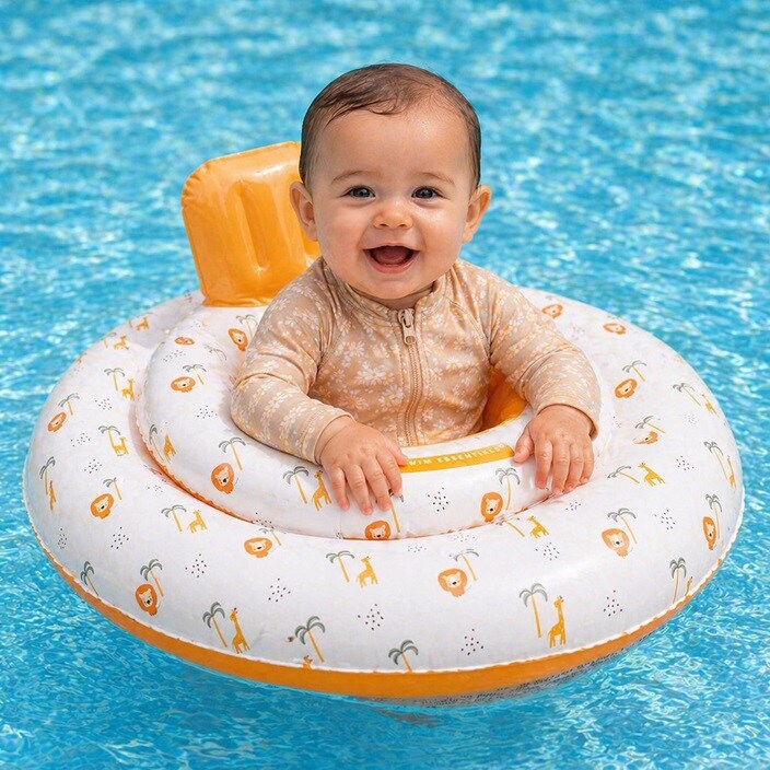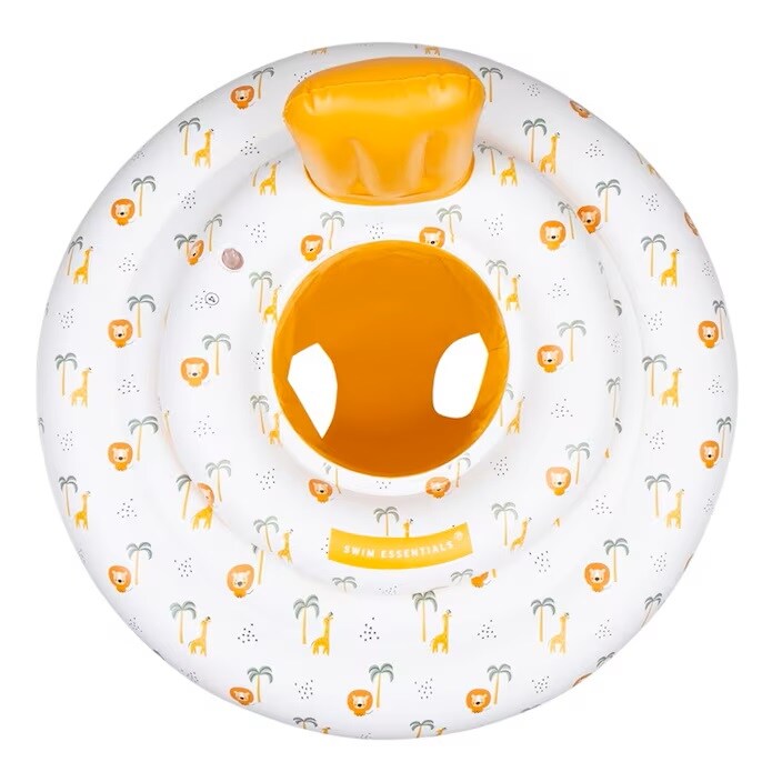 Swim Essentials Baby Float Jungle ir drošs un stabils piepūšams peldriņķis mazuļiem, kas paredzēts bērniem vecumā no 0 līdz 1 gadam (līdz 11 kg). Ar 69 cm diametru tas nodrošina stabilitāti ūdenī, ļaujot vecākiem justies droši, kamēr mazulis bauda pirmās peldēšanās reizes. Peldriņķis aprīkots ar četrām atsevišķām gaisa kamerām un drošības vārstiem, kas novērš gaisa noplūdi un palielina drošības līmeni. Apakšā izvietotie kāju caurumi ļauj mazulim brīvi kustināt kājiņas, nodrošinot komfortu un stabilu sēdēšanu. Izgatavots no kvalitatīva 0,25 mm PVC materiāla un pārbaudīts atbilstoši ES drošības standartiem EN-13138-3:2014 un EN-71, šis peldriņķis ir uzticama izvēle peldēšanās piedzīvojumiem.