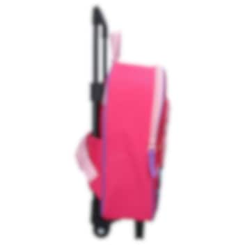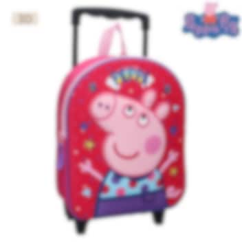 Peppa Pig Friends Around Town bērnu čemodāns ir stilīgs un praktisks trolley backpack, kas piemērots gan ceļojumiem, gan ikdienas lietošanai. Čemodāns ir aprīkots ar teleskopisku rokturi un diviem riteņiem ērtai vilkšanai, kā arī pārvadāšanas rokturi satveršanai. Priekšpusē atrodas krāsains 3D attēls, kas padara koferi vizuāli pievilcīgu bērniem. Čemodāns piedāvā ietilpīgu galveno nodalījumu ar rāvējslēdzēju, kā arī polsterētas un regulējamas pārnēsāšanas siksnas, ļaujot somu nēsāt mugurā kā mugursomu.