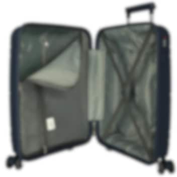 Roll Road Universe Blue apvieno eleganci, izturību un ērtību – ideāli piemērots lielākiem bērniem un jauniešiem, kuri vēlas ceļot stilīgi. Tā modernais dizains un izturīgā ABS formētā plastmasa padara koferi gan izturīgu, gan viegli pārnēsājamu. Koferis lieliski piemērots kā rokas bagāža ar izmēriem 55 x 40 x 20 cm, atbilstoši IATA noteikumiem. Četri klusie 360° riteņi nodrošina vienmērīgu un vieglu manevrēšanu lidostās un stacijās, savukārt teleskopiskais rokturis ar diviem augstuma līmeņiem un augšējais rokturis ļauj koferi ērti pārnēsāt. Iekšpusē koferis ir pārklāts ar audumu un aprīkots ar praktiskiem nodalījumiem: viena puse ar stiprinājuma siksnām, otra – ar siksnām un rāvējslēdzēja pārsegu, kas palīdz uzturēt kārtību. Drošību nodrošina kombinētais kodu slēdzis, kas aizsargā visas mantas ceļojuma laikā.