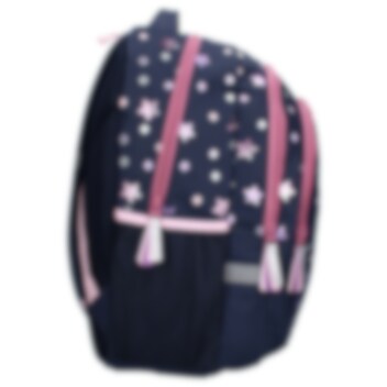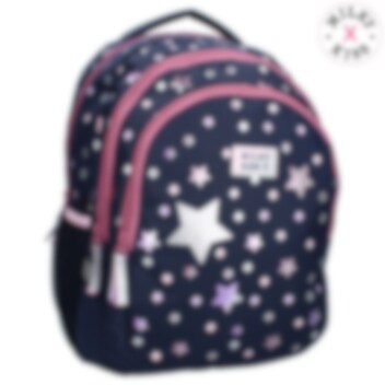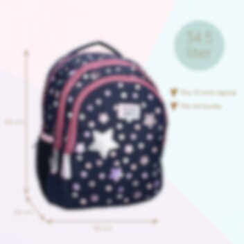 Milky Kiss Fable World ir ietilpīga un stilīga mugursoma, kas paredzēta nedaudz vecākiem bērniem. Tā ir izgatavota no izturīga, ūdeni atgrūdoša poliestera, kas nodrošina somas ilgmūžību un praktiskumu ikdienas lietošanā. Mugursomai ir plašs galvenais nodalījums, divi papildu priekšējie nodalījumi un sānu sieta kabatas pudelēm – viss, kas nepieciešams skolai vai ceļojumiem. Polsterētās un regulējamās plecu siksnas sniedz ērtumu, savukārt pārnēsāšanas rokturis nodrošina praktisku lietošanu dažādās situācijās. Ar ietilpību 34,8 litri, šī mugursoma ir ideāla gan mācībām, gan brīvajam laikam.