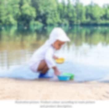 Green Sprouts Violet saules kepons bērniem un mazuļiem ir droša un stilīga izvēle saulainām dienām. Izgatavots no mīksta, elastīga un ātri žūstoša materiāla ar UPF 50+ saules aizsardzību, tas efektīvi bloķē UV-A un UV-B starus, pasargājot bērna jutīgo ādu. Cepurei ir gara kakla aizsardzība, plata priekšējā mala un iekšējā odere ar ventilāciju, lai galva nepārkarstu. Ērtā zoda aukla nodrošina, ka cepure paliek savā vietā arī aktīvas kustības laikā. Materiāls ir Oeko-Tex sertificēts, drošs bērniem un viegli kopjams, jo cepuri var mazgāt veļasmašīnā.