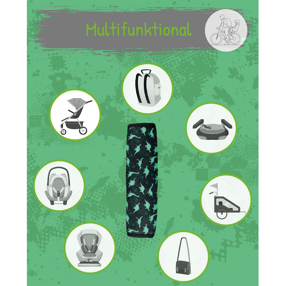 Lai atvieglotu spiedienu uz bērna krūtīm, auto braucienos noderēs mīksts un mājīgs drošības jostas aizsargs. Heckbo Dinos ir universāls jostas aizsargs, kas der visiem izplatītākajiem automašīnu jostu veidiem. Jostas pārvalks ir 21 cm garš un 6 cm plats, un tas viegli stiprinās ap drošības jostu, izmantojot velcro aizdari. Drošības jostas aizsargs padara braucienus ērtākus un samazina spiedienu no jostas, nodrošinot bērnam komfortu garos braucienos.
