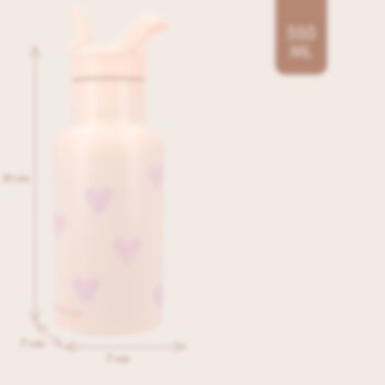 Kidzroom Hearts ir ideāla dzeramā pudele bērniem – mīlīga, izturīga un viegli lietojama ikdienā. Izgatavota no pārtikas kvalitātes nerūsējošā tērauda, šī 350 ml pudele ilgāk uztur dzērienu vēsu un garšīgu. Pudeles snīpis ir īpaši draudzīgs bērniem – to var nolocīt, lai pasargātu no netīrumiem, kad bērns beidz dzert. Iekšpusē esošais salmiņš sniedzas līdz pat pudeles apakšai, ļaujot dzert, turot pudeli vertikāli, bez izliešanas riska. Praktiskais rokturis padara pudeli ērti pārnēsājamu, savukārt noņemamais skrūvējams vāciņš un viegli tīrāmais snīpis nodrošina higiēnu. Šī pudele lieliski piemērota skolas gaitām, ekskursijām, sporta nodarbībām vai braucieniem ar automašīnu.