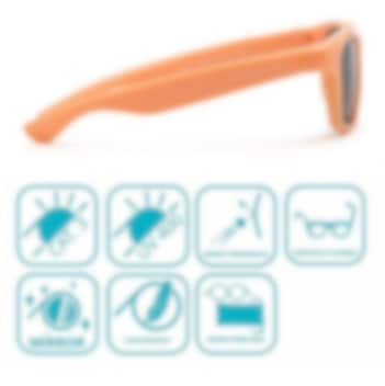 Koolsun Wave Papaya bērnu saulesbrilles apvieno stilīgu dizainu ar maksimālu drošību un izturību. Triecienizturīgais rāmis un elastīgās kājiņas no TPE materiāla nodrošina lielisku pielāgošanos un ērtu valkāšanu aktīviem bērniem. Lēcas izgatavotas no neplīstoša polikarbonāta ar Revo spoguļu tehnoloģiju, kas piešķir modernu izskatu un vienlaikus nodrošina augstu aizsardzību pret skrāpējumiem. Brilles piedāvā 100 % UV-A un UV-B aizsardzību. Komplektā ietilpst praktisks mikrošķiedras maisiņš, kas noder gan brillēm drošai uzglabāšanai, gan tīrīšanai.