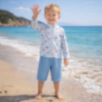 Playshoes Dinos Allover ir aizsargājošs un glīts UV peldkostīms bērniem, kas nodrošina ļoti augstu saules aizsardzību ar sertificētu UV aizsardzības koeficientu 80. Peldkostīmam ir garas piedurknes, garas kājas un aizsargājoša kakla apkakle, kā arī priekšpusē iestrādāts rāvējslēdzējs, kas atvieglo uzvilkšanu un novilkšanu. Izgatavots no mīksta, elastīga un Oeko-Tex sertificēta materiāla, šis peldkostīms ir ērts valkāšanai gan sausumā, gan slapjā stāvoklī, kā arī ātri žūst pēc peldes. Playshoes UV peldkostīmi ir ideāli piemēroti gan pludmalei, gan baseinam, nodrošinot bērnam komfortu un drošību saulē.