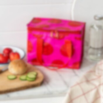 Rex London Insulated Lunchbag Red on Pink ir funkcionāla un praktiska maza aukstuma soma ar jauku dizainu. Soma, kuras izmēri ir 21 x 16 x 12 cm, izgatavota no pārstrādāta materiāla ar auksti izolētu iekšpusi, kas uztur ēdienu un dzērienus svaigus un vēsus. Rex London Insulated Lunchbag ir salokāma, tāpēc aizņem maz vietas, kad to neizmanto. Šī nelielā aukstuma soma ir ideāli piemērota izbraucieniem, braucieniem ar automašīnu, autobusu vai vilcienu, kā arī ēdiena un dzērienu ņemšanai līdzi uz pludmali.